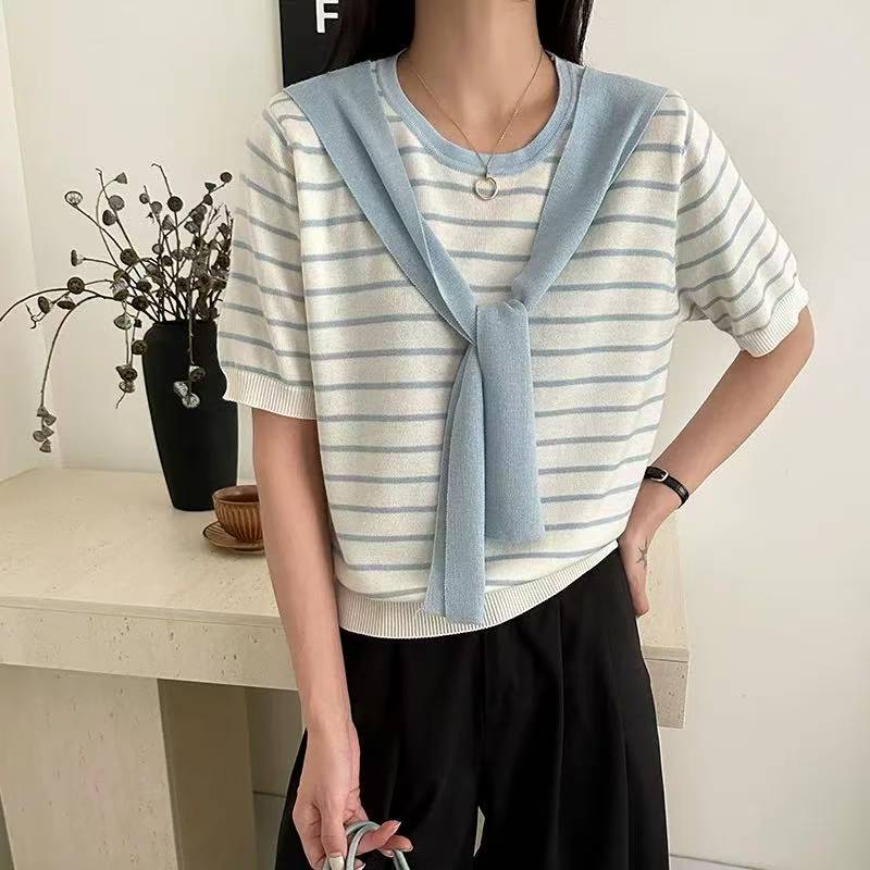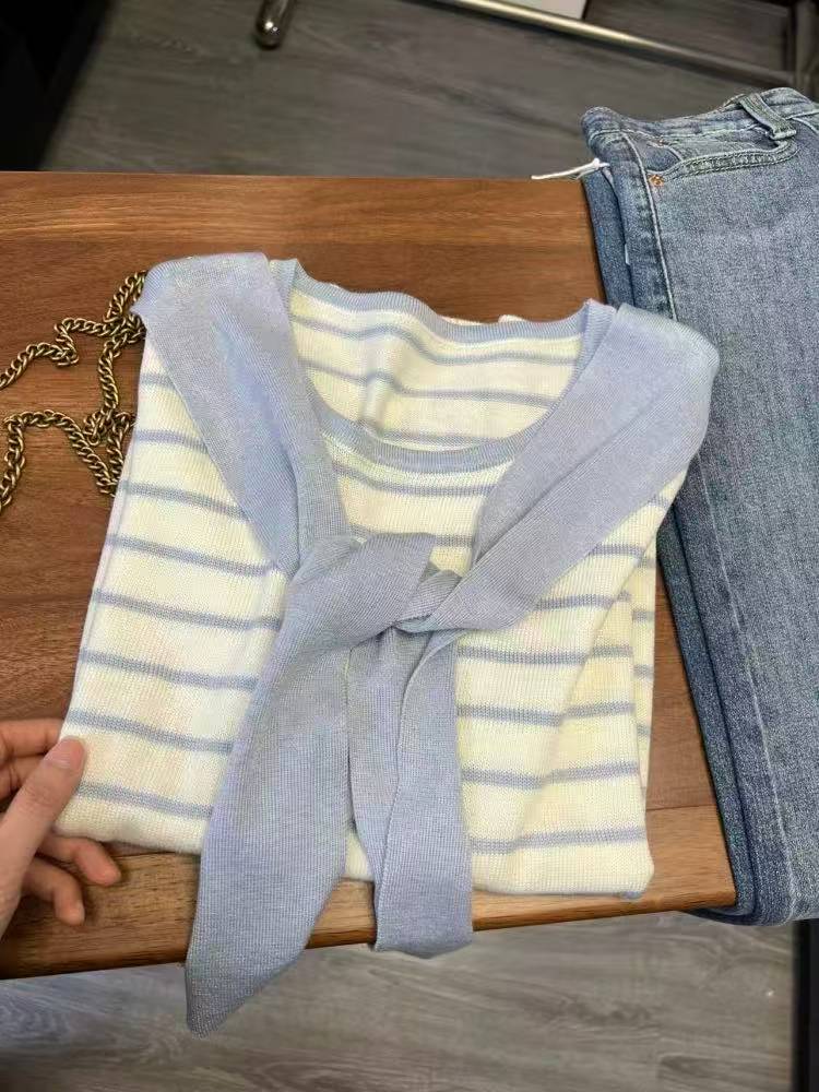 Blusa blanco y celeste con rayas