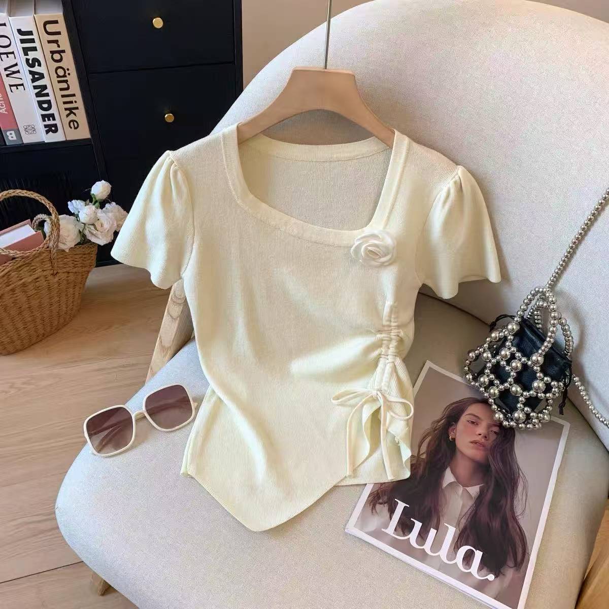 Blusa crema con flor